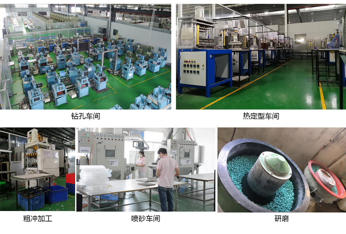 鉆孔機50多臺,熱定型機器60臺,自動噴砂機6臺